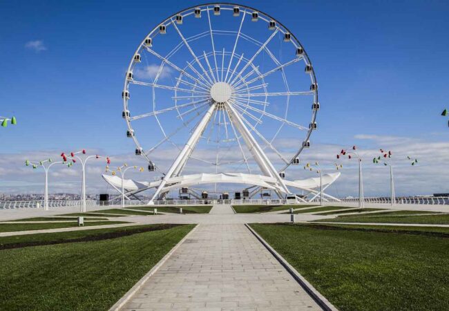 Azerbaijan, the nation and former Soviet republic, is bounded by the Caspian Sea and Caucasus Mountains, which span Asia and Europe. Its capital, Baku, is famed for its medieval walled Inner City. Within the Inner City lies the Palace of the Shirvanshahs, a royal retreat dating to the 15th century, and the centuries-old stone Maiden Tower, which dominates the city skyline.